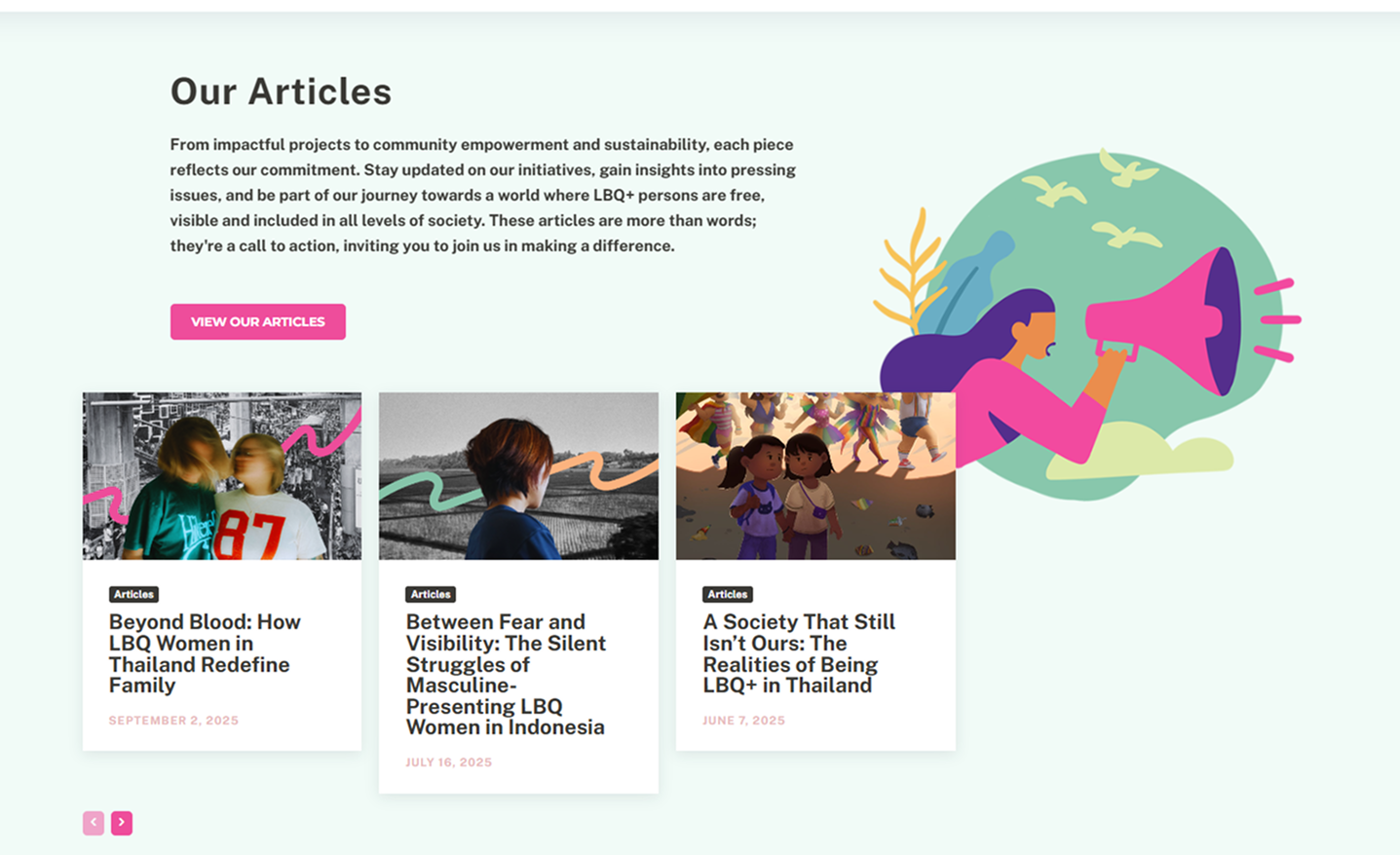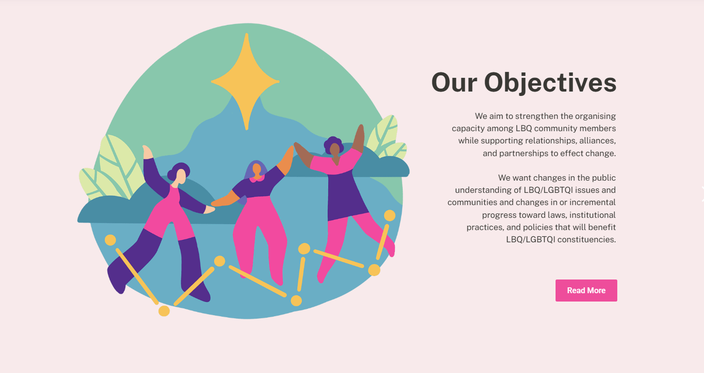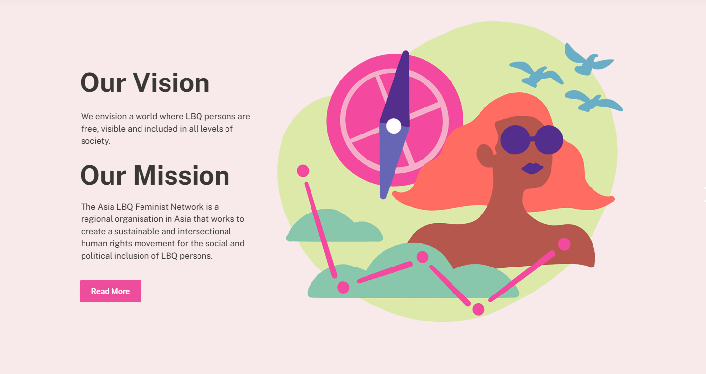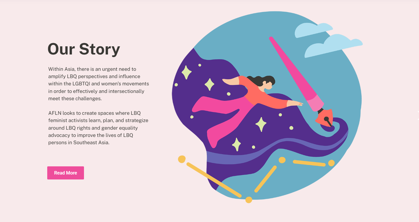 I was asked to create illustrations for the new website of Asian Feminist LBQ Network. I explored a specific art style that aligned with the project’s vision, to maintain a strong and clear message.